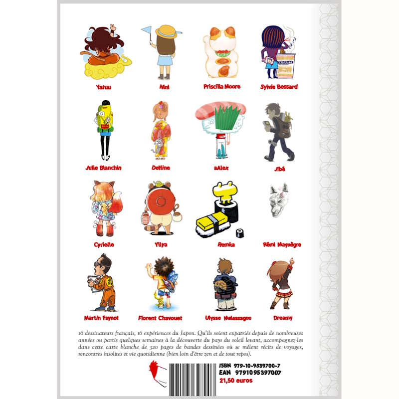 Qu’ils soient expatriés de longue date ou partis quelques semaines à la découverte du pays du soleil levant, ils vous entraineront au fil de ces 320 pages de bandes dessinées où se mêlent récits de voyages, rencontres insolites et vie quotidienne (bien loin d’être zen et de tout repos !).